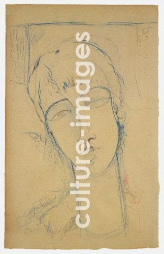 ModiglianI. Amedeo (1884-1920), Anna Achmatowa (Ritratto di Donna Rossa), Feder, Tusche, Bleistift auf Papier, 38,6x24,2, 1915. Italien, Expressionismus, Privatsammlung.