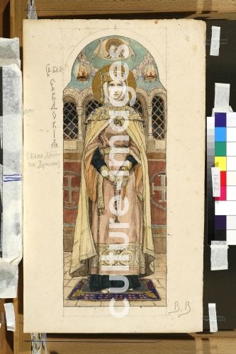 Wasnezow, Viktor Michailowitsch (1848-1926), Eudoxia von Moskau (Entwurf für die Fresken in der Wladimirkathedrale in Kiew), Aquarell auf Papier, 48,2x27,3, 1884-1889. Russland, Jugendstil, Staatliche Tretjakow-Galerie, Moskau.