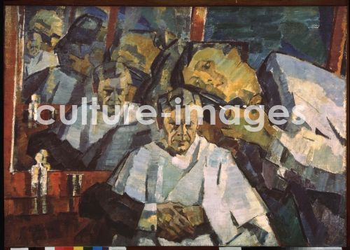Uljanow, Nikolai Pawlowitsch (1875-1949), Selbstbildnis mit Friseur, Öl auf Leinwand, 1914-1923, Russland, Russische Avantgarde, Staatliches Kunstmuseum, Nischni Nowgorod. VG-Bild-Kunst Bonn.