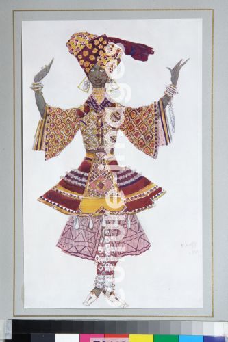 Bakst, Léon (1866-1924), Kostümentwurf zum Ballett Der blaue Gott von R. Hahn, 1912, Farblithographie, Theatermalerei, Russland, Privatsammlung