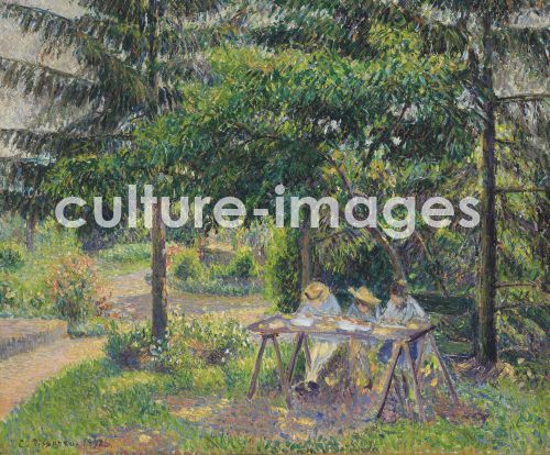 Pissarro, Camille (1830-1903), Kinder im Garten in Eragny (Enfants attablés dans le jardin à Eragny), 1892, Öl auf Leinwand, 58x71, Impressionismus, Frankreich, Privatsammlung