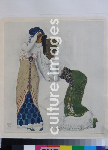 Bakst, Léon (1866-1924), Frauen mit orientalischer Kleidung, 1910, Farblithographie, Theatermalerei, Russland, Privatsammlung