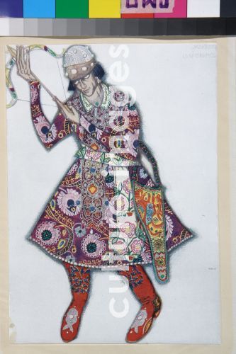 Bakst, Léon (1866-1924), Iwan Zarewitsch. Kostümentwurf zum Ballett Der Feuervogel (L'oiseau de feu) von I. Strawinski, 1910, Farblithographie, Theatermalerei, Russland, Privatsammlung