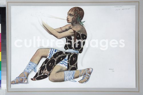 Bakst, Léon (1866-1924), Narziss. Kostümentwurf zum Ballett Narcisse von N. Tscherepnin, 1911, Farblithographie, Theatermalerei, Russland, Privatsammlung