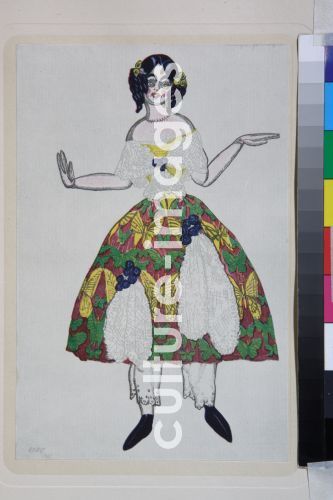 Bakst, Léon (1866-1924), Kostümentwurf zum Ballett Der Zauberladen von G. Rossini, 1919, Farblithographie, Theatermalerei, Russland, Privatsammlung