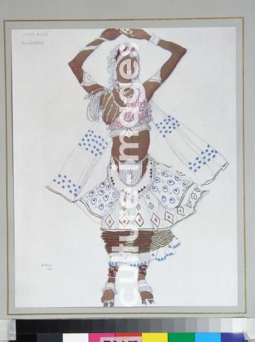 Bakst, Léon (1866-1924), Kostümentwurf zum Ballett Der blaue Gott von R. Hahn, 1912, Farblithographie, Theatermalerei, Russland, Privatsammlung