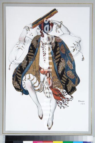 Bakst, Léon (1866-1924), Jüdischer Tanz. Kostümentwurf zum Ballett Cléopatre, 1910, Farblithographie, Theatermalerei, Russland, Privatsammlung