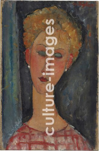 ModiglianI. Amedeo (1884-1920), La blonde aux boucles d'oreille, 1918-1919. Öl auf Leinwand, 46x29.8, Expressionismus, Italien, Privatsammlung