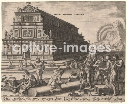 Galle, Philipp (1537-1612), Der Tempel der Diana von Ephesos (aus der Folge Die acht Weltwunder) Nach Maarten van Heemskerck, Radierung, 19,9x26,1, Altniederländische Kunst, 1572, Niederlande, Museum Boijmans Van Beuningen, Rotterdam.