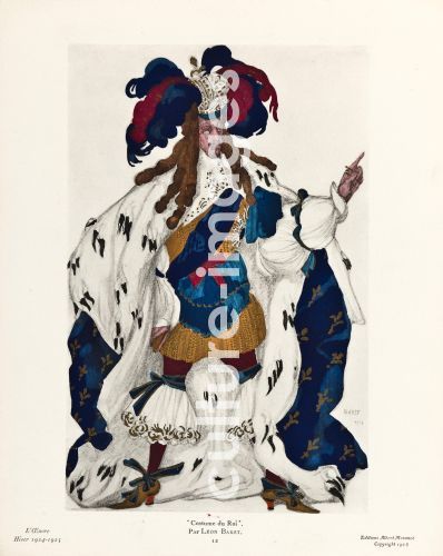 Bakst, Léon (1866-1924), König. Kostümentwurf zum Ballett Dornröschen von P. Tschaikowski, Farblithographie, Theatermalerei, 1921, Russland.