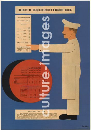 Bulanow, Dmitri Anatoliewitsch (1898-1942), Fünfjahresplan der Gemeinschaftsverpflegung, Farblithographie, 69x54, Sowjetische Agitations- und Propagandakunst, 1931, Russland, Russische Staatsbibliothek, Moskau.