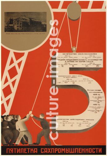 Bulanow, Dmitri Anatoliewitsch (1898-1942), Fünfjahresplan der Zuckerindustrie, Farblithographie, 101x69,5, Sowjetische Agitations- und Propagandakunst, 1931, Russland, Russische Staatsbibliothek, Moskau.