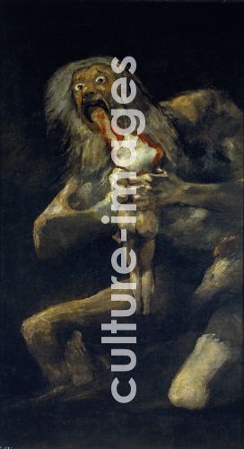 Goya, Francisco, de (1746-1828), Saturn verschlingt seinen Sohn, Mischtechnik auf Leinwand, 143,5x81,4, Romantik. 1820-1822, Spanien, Museo del Prado, Madrid.