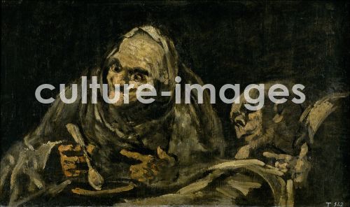 Goya, Francisco, de (1746-1828), Zwei Alte essen Suppe, Mischtechnik, 49,3x83,4, Romantik, 1820-1823, Spanien, Museo del Prado, Madrid.