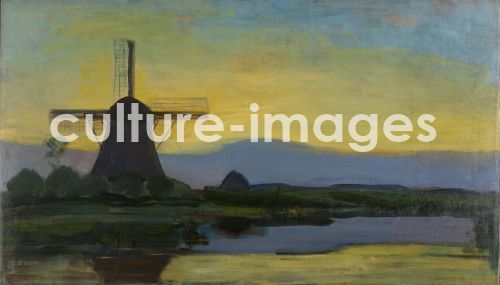 Mondrian, Piet (1872-1944), Windmühle bei Nacht, Öl auf Leinwand, De Stijl, 67.5x117.5, Holland, 1907-1908, Gemeentemuseum Den Haag. VG-Bild-Kunst Bonn