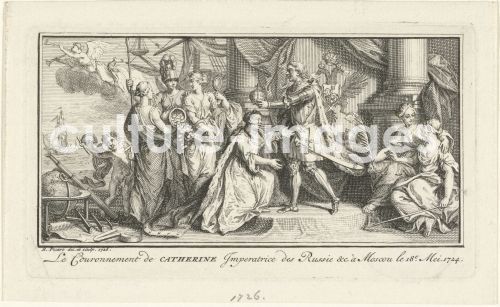 Picart, Bernard (1673–1733), Peter der Große krönt seine Frau Katharina I. zur Kaiserin, Kupferstich, 6,5x11.6, Holland, 1726, Barock, Rijksmuseum, Amsterdam.