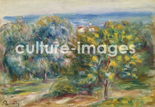 Renoir, Pierre Auguste (1841-1919), Mittagslandschaft, Öl auf Leinwand, 21,2x30,5, Frankreich, 1910. Impressionismus, Privatsammlung.