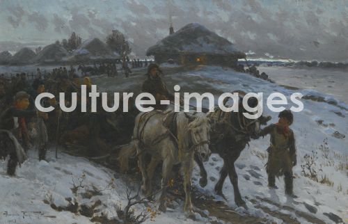Makowski, Alexander Wladimirowitsch (1869-1924), Die Abreise zur Jagd, Öl auf Leinwand, 58,5x89. Russland, 1915. Realismus, Privatsammlung.