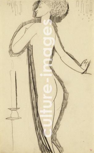 ModiglianI. Amedeo (1884-1920), Stehender weiblicher Akt in Profil mit brennende Kerze, Bleistift auf Papier, Italien, um 1911. Expressionismus, Paul Alexandre collection.