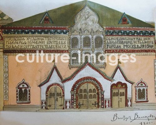 Wasnezow, Viktor Michailowitsch (1848-1926), Fassadenentwurf der Tretjakow-Galerie. Zeitschrift Mir Iskusstwa (Welt der Kunst) 1900 Nr. 21-22, Farblithographie, Jugendstil, 1900, Russland, Russische Staatsbibliothek, Moskau.