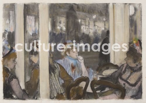 Degas, Edgar (1834-1917), Frauen auf einer Café-Terrasse. Abend, Pastell auf Monotypie, Impressionismus, 1877, Frankreich, Musée d'Orsay, Paris.
