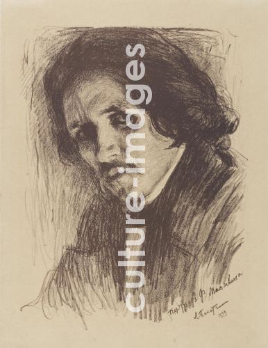 Bakst, Léon (1866-1924), Porträt von Maler Filipp Andrejewitsch Maljawin (1869-1940), Lithografie, 36,5x28,2, Graphik, 1899, Russland, Staatliche Eremitage, St. Petersburg.