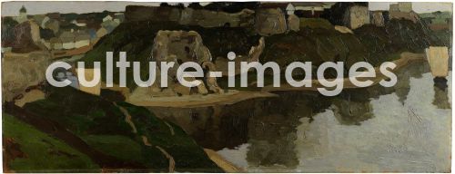 Roerich, Nicholas (1874-1947), Pskow. Blick auf den Kreml, Öl auf Sperrholz, 31,7x83, Symbolismus, 1904, Russland, Staatliches Museum für orientalistische Künste, Moskau.
