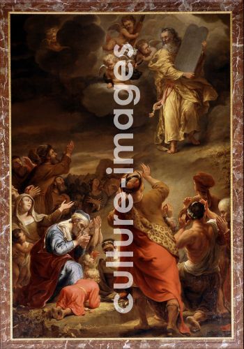 Bol, Ferdinand (1616-1680), Moses verkündet am Berg Sinai die zehn Gebote, Öl auf Leinwand, 423x284, Barock, 1662, Holland, Koninklijk Paleis Amsterdam.