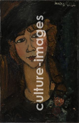 ModiglianI. Amedeo (1884-1920), Kopf einer Frau mit Hut. (Lolotte), Öl auf Leinwand, 55x35, Expressionismus, 1917. Italien, Musée national d'art moderne, Centre Georges Pompidou, Paris.