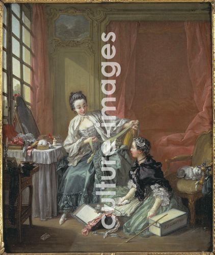 Boucher, François (1703-1770), Die Modistin, Öl auf Leinwand, 64x53, Rokoko, 1746, Frankreich, Nationalmuseum Stockholm.