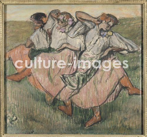 Degas, Edgar (1834-1917), Drei Russischen Tänzerinnen, Pastell auf Papier, 62x67, Impressionismus, Ende 1890er, Frankreich, Nationalmuseum Stockholm.