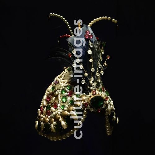 Bakst, Léon (1866-1924), Kopfschmuck entworfen für Ida Rubinstein im Ballett Scheharazade, Glas, Milchglas, Vergoldung,Angewandte Kunst, 1910. Russland, Bibliothèque-Musée de l'Opera Garnier, Paris.