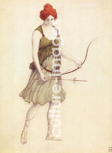Bakst, Léon (1866-1924), Kostümentwurf zum Ballett Sylvia ou La Nymphe de Diane von Léo Delibes, Bleistift, Aquarell und Gouache auf Papier, Jugendstil, 1901, Russland, Staatliches Russisches Museum, St. Petersburg.