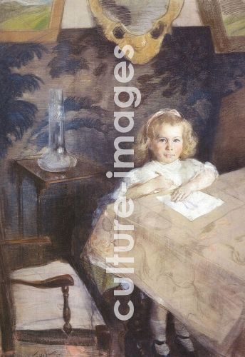Bakst, Léon (1866-1924), Porträt von Marina Nikolajewna Grizenko (1901-1971) als Kind, Pastell auf Leinwand, 141,5x106, Jugendstil, 1905, Russland, Staatliches Russisches Museum, St. Petersburg.