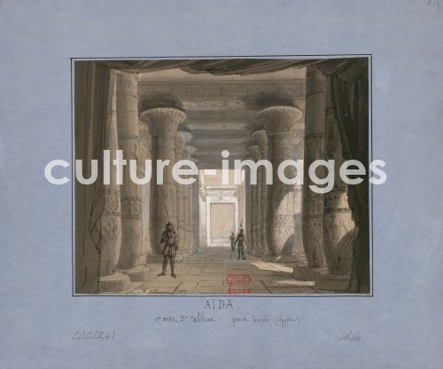 Chaperon, Philippe (1823-1906), Bühnenbildentwurf zur Oper Aida von Giuseppe Verdi. Théâtre de l'Opéra, Kairo, Gouache auf Papier, Theatermalerei, 1871, Frankreich, Bibliothèque Nationale de France.