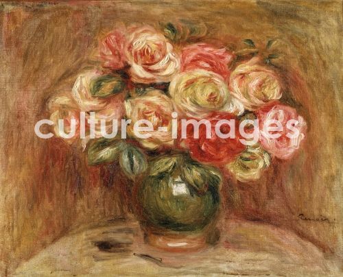 Renoir, Pierre Auguste (1841-1919), Rosenstrauss in grüner Vase, Öl auf Leinwand, Impressionismus, 1915. Frankreich, Museum Langmatt.