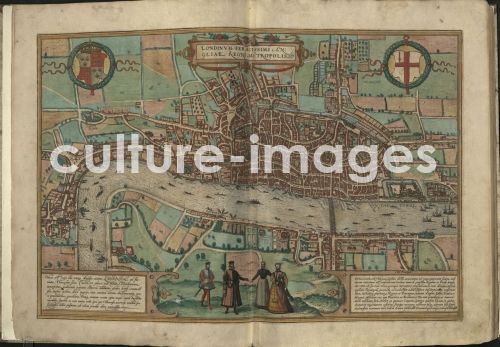 Braun, Georg (1541-1622), Ansicht von London, Kupferstich, Aquarell, Kartografie, 1572, Flandern, Privatsammlung,