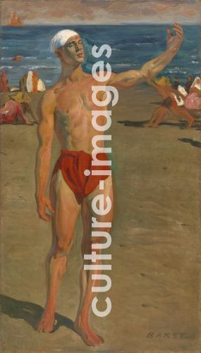 Bakst, Léon (1866-1924), Vaslav Nijinsky am Lido, Öl auf Leinwand, 203,5x116, Jugendstil, 1909, Russland, © Museum of Modern Art, New York.