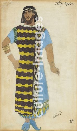 Bakst, Léon (1866-1924), Kostümentwurf zum Ballett "Die Tragödie der Salome" von Florent Schmitt, Aquarell und Gold auf Papier, 31,5x19,3, Theatermalerei, 1908, Russland, Privatsammlung.