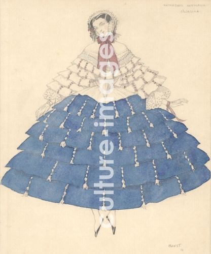 Bakst, Léon (1866-1924), Kostümentwurf zum Ballett Carnaval von R. Schumann, Bleistift, Aquarell auf Papier, Theatermalerei, 1910, Russland, Staatliches Museum für Theater-und Musikkunst, St. Petersburg.