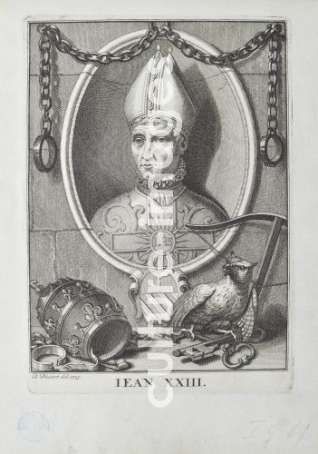 Picart, Bernard (1673-1733), Gegenpapst Johannes XXIII. (Baldassare Cossa), Radierung, Barock, 1713, Frankreich, Privatsammlung.
