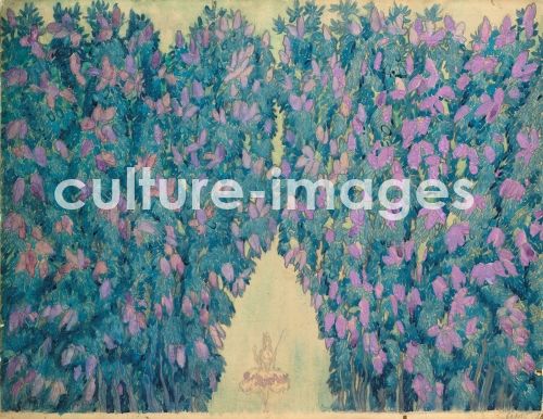 Bakst, Léon (1866-1924), Bühnenbildentwurf zum Ballett Dornröschen von P. Tschaikowski, Aquarell auf Papier, Theatermalerei, 1921, Russland, Privatsammlung.