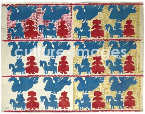 Bakst, Léon (1866-1924), Textildesign, Aquarell, Gouache auf Papier, Jugendstil, Anfang des 20. Jhs., Russland, Privatsammlung.