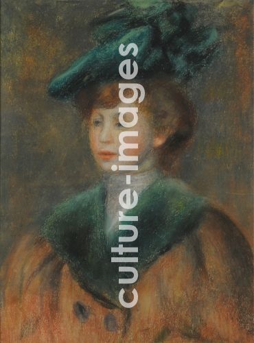 Renoir, Pierre Auguste (1841-1919), Porträt einer jungen Frau mit grünem Hut, Öl auf Papier, 56,5x43,5, Impressionismus, Frankreich, Museo Nacional de Bellas Artes de Buenos Aires.