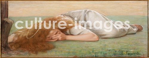 Longoni, Emilio (1859-1932), Maria Magdalena am Fuße des Kreuzes, Öl auf Leinwand,Postimpressionismus, 1897, Italien, Pinacoteca Fondazione Cassa di Risparmio di Tortona.
