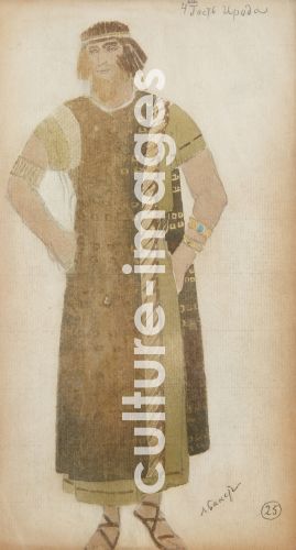 Bakst, Léon (1866-1924), Kostümentwurf zum Theaterstück Salomé von O. Wilde, Gouache und Tusche auf Papier, um 1912, Theatermalerei, Russland, Privatsammlung.