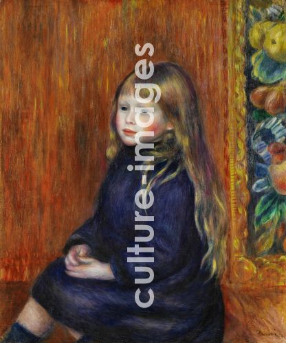 Renoir, Pierre Auguste (1841-1919), Enfant assis en robe bleue (Portrait d'Edmond Renoir fils), Öl auf Leinwand, Impressionismus, 1889, Frankreich, Collection Nahmad, Monaco.