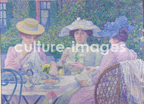 Rysselberghe, Théo van (1862-1926), Tee im Garten, Öl auf Leinwand, Postimpressionismus, Belgien, Musée d'Ixelles.