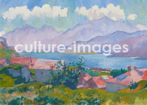 Giacometti, Giovanni (1868-1933), Blick auf Silsersee von Capolago, Öl auf Leinwand, Postimpressionismus, 1927, Schweiz, Privatsammlung.