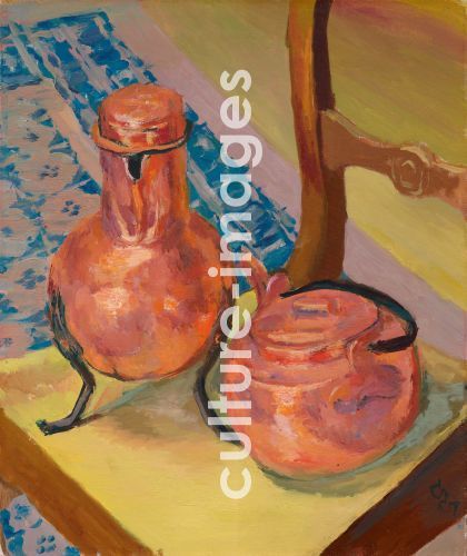 Giacometti, Giovanni (1868-1933), Kupferstillleben auf einem Stuhl, Öl auf Leinwand, Postimpressionismus, 1932, Schweiz, Privatsammlung.